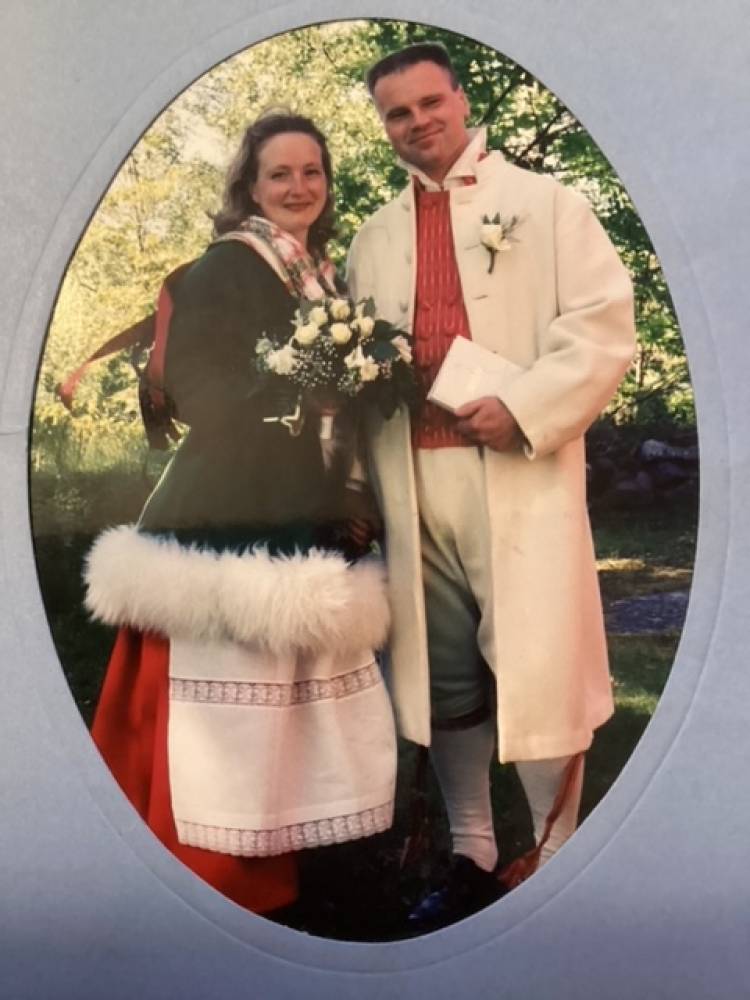 Dräkten är köpt från Brage. Bältet har Johans vän tillverkat. De är försilvrat.