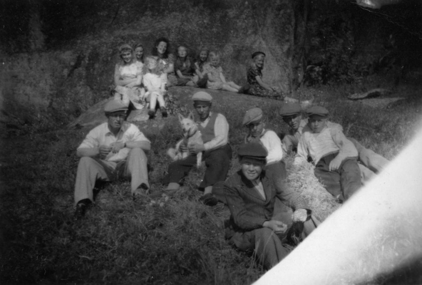 Hyppeisungdomen sitter vid Högle en sommardag