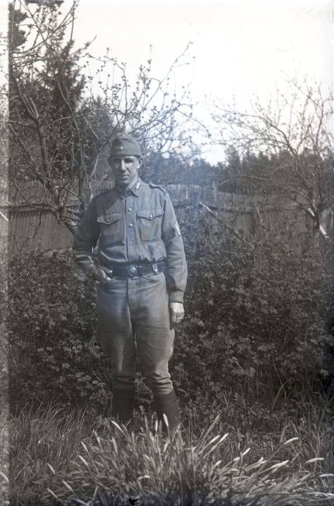 Glasnega. Man in uniform, appears to be German hunter's uniform with SS runes on the collar mirror.