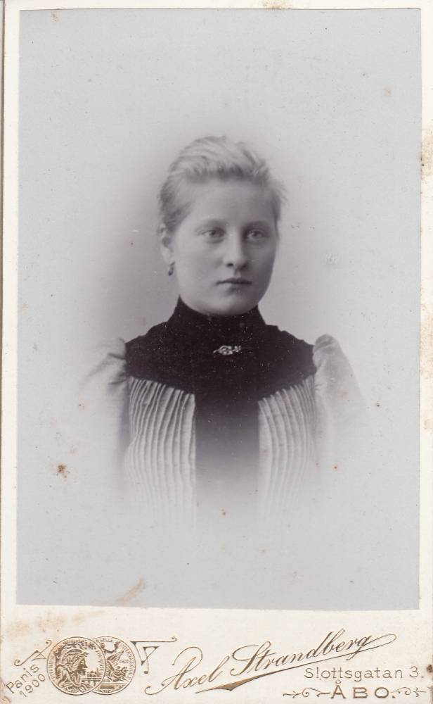 född 22.9.1884 Michels Mossala och död 30.9.1972. Gift med Konrad Eriksson från Byholm i Kivimo.