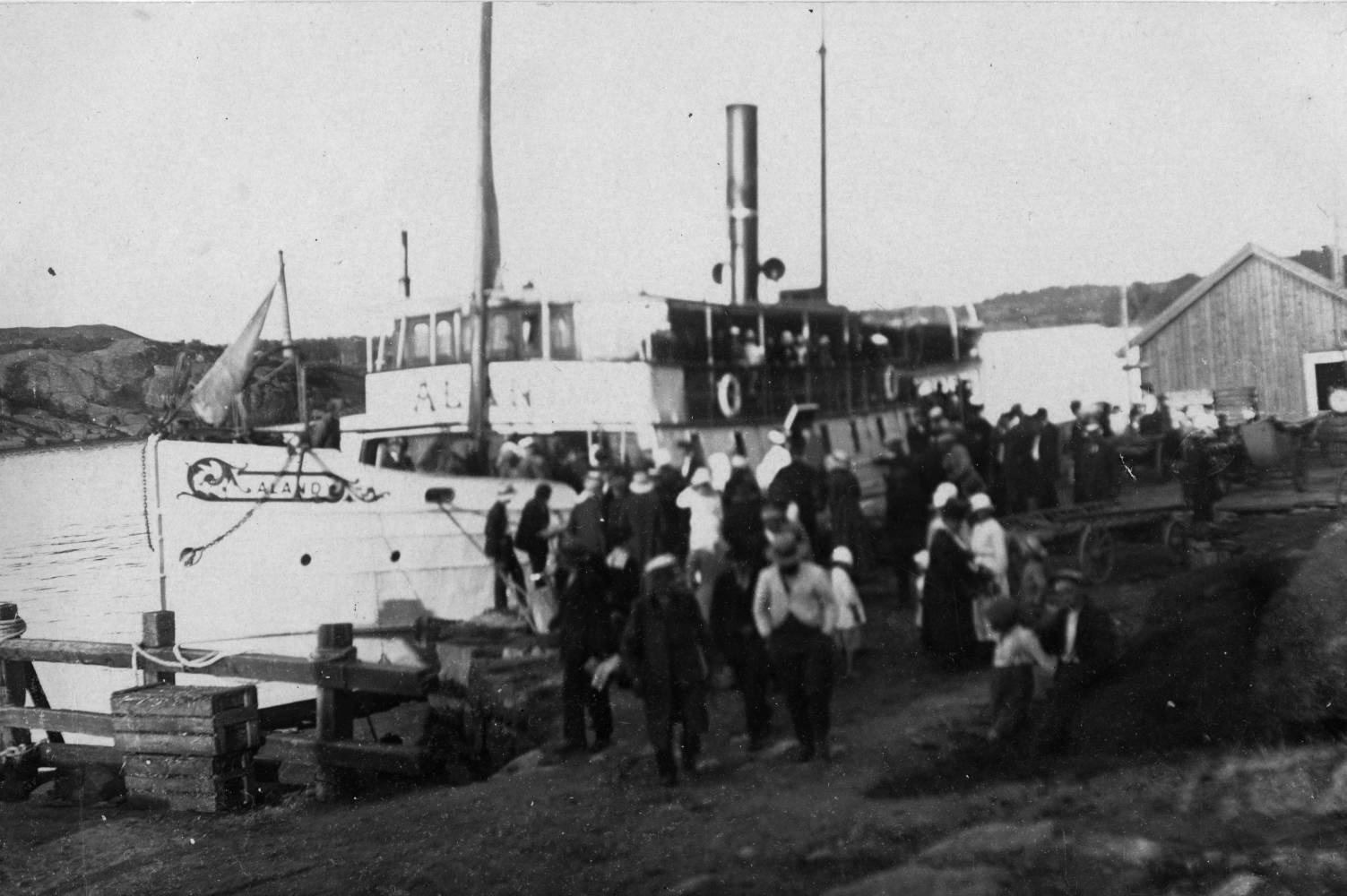 Ångbåten ÅLAND har lagt till i en av de 27 bryggorna p siun resa Åbo- Mariehamn Ångbåts Ab Åland var ett finländskt rederi för skärgårdstrafik. Ångbåts Ab Åland grundade 1875 i Åbo av kofferdikaptenen Isak Wilhelm Jansson från Korpo, för trafik mellan Åbo och Mariehamn. Bolagets sista fartyg, m/s Winga (byggt 1877 i Sverige som ångbåt), såldes 1975. Då hade verksamheten några år tidigare upphört, trots att rederiet formellt inte upplösts. Aktiemajoriteten övergick senare till Nystads sjöhistoriska förening med årlig bolagsstämma i Nystad.[1]